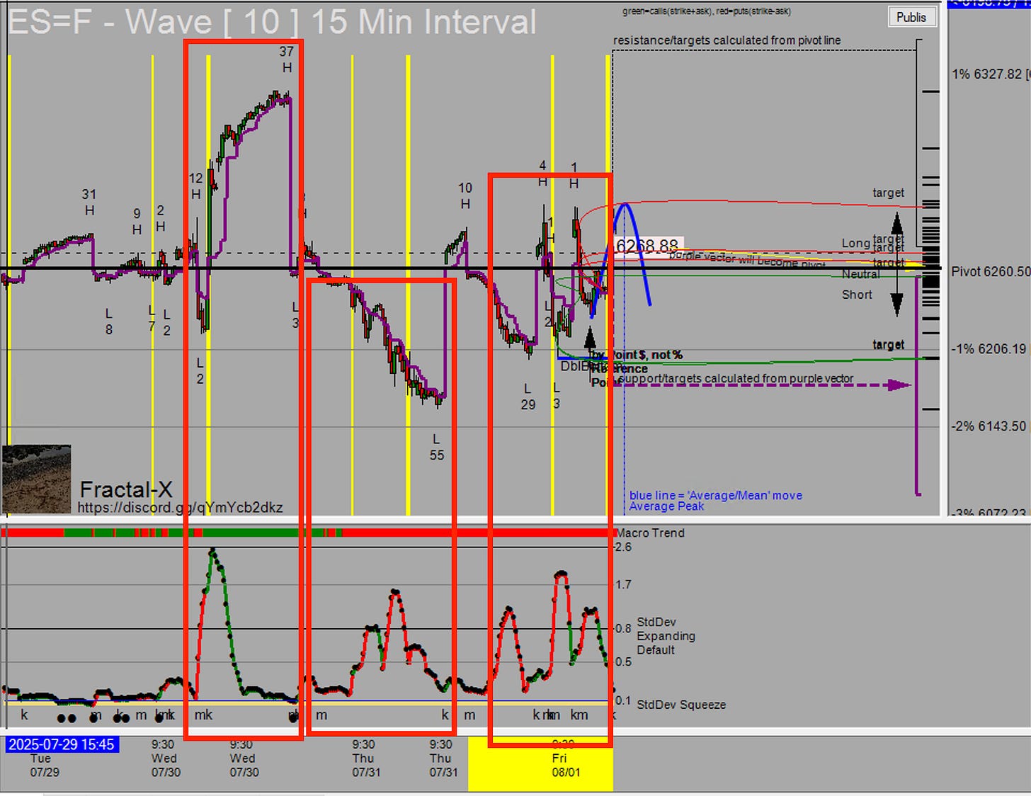 This powerful Fractal tool, integrated into every chart and timeframe, visually indicates anticipated market movements and volatility through: