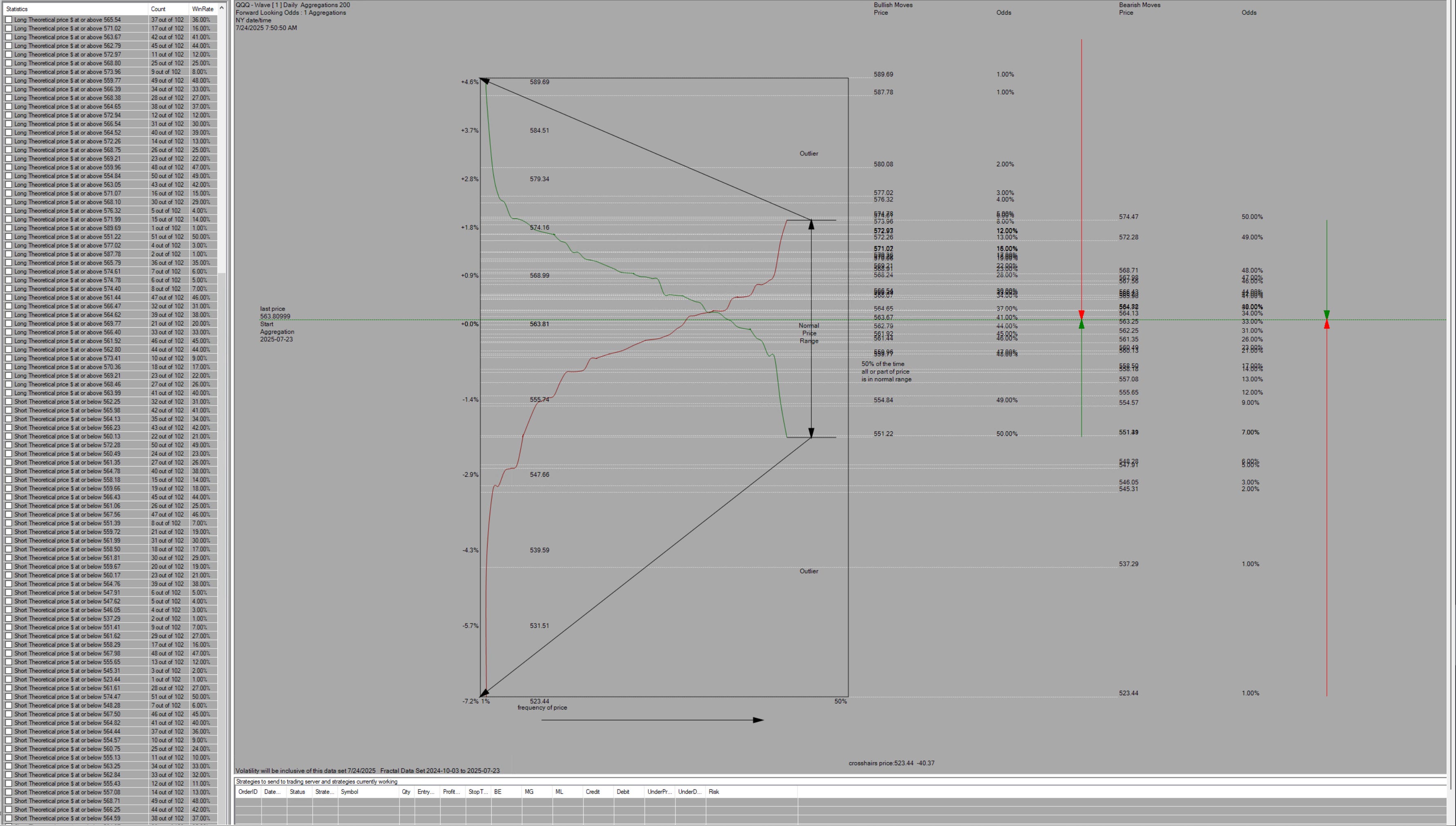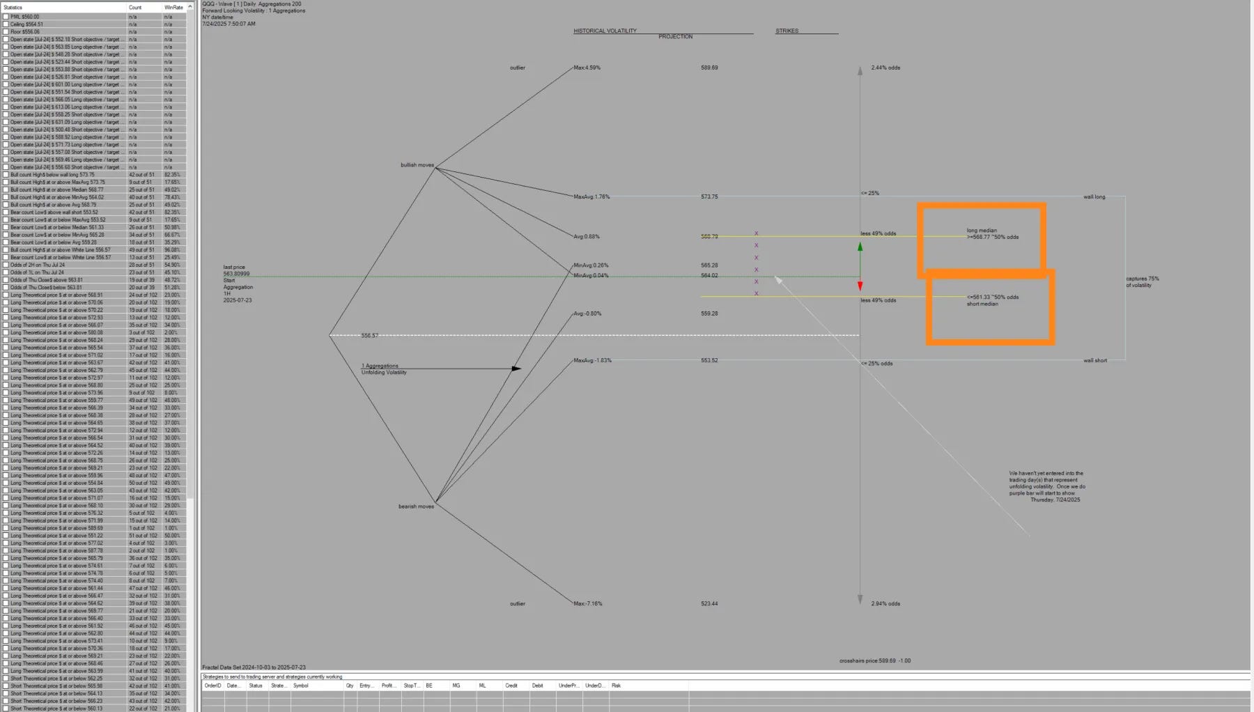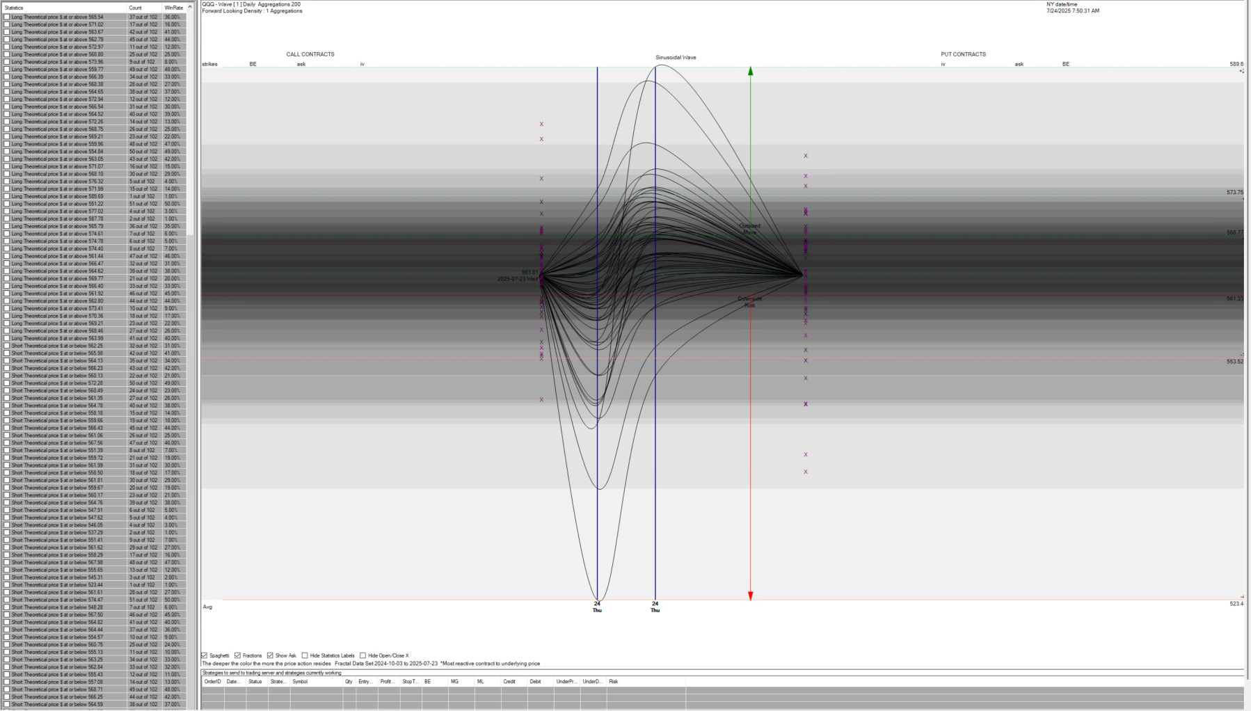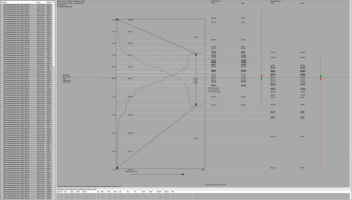 Density Graphs (below): Visualize the forward-looking “paths” that price can take according to different scenarios.